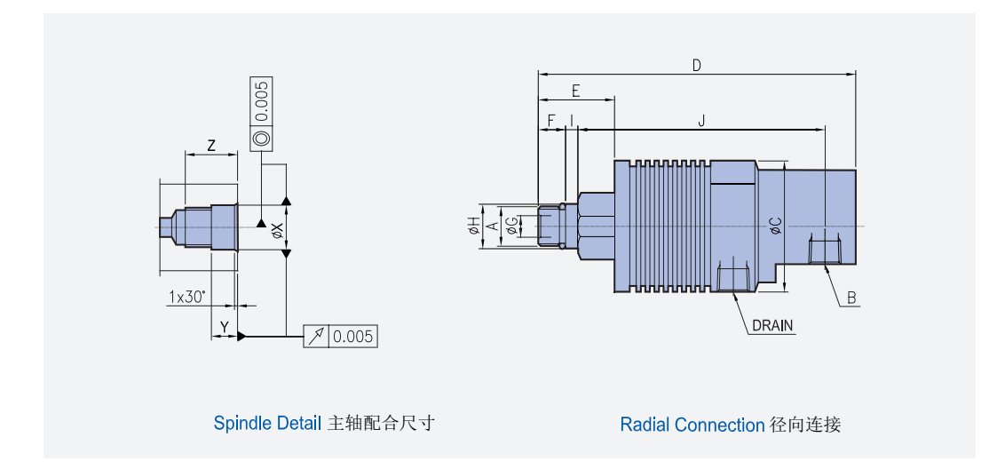一体式:专门为机床和需要高速旋转及高压作业的专机而开发设计的;