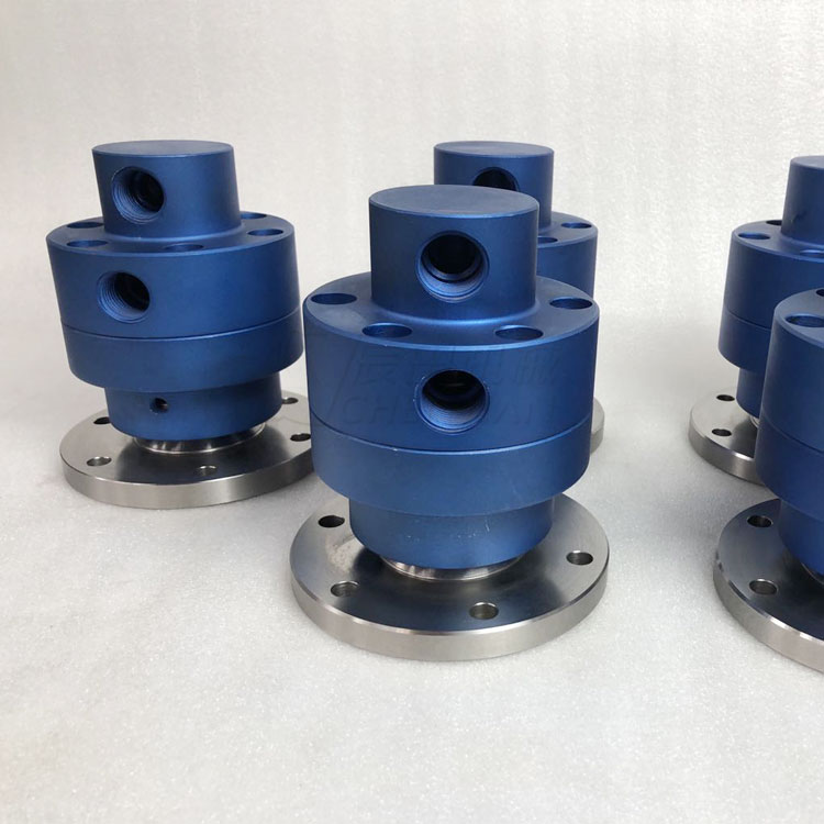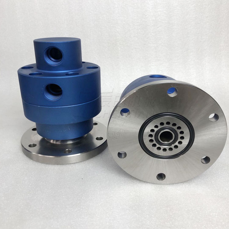 速旋转接头是对高速条件下通水、热油、压缩空气等专门设计的旋转接头。主要密封原件均采用进口密封材料,有效的随介质进入的各种硬杂质和研磨粒的磨损。转体采用特殊处理工艺可防止磨损及腐蚀,采用两个进口高精密轴承支撑整个壳体,使其在高转速下长期平稳运转而无泄漏。