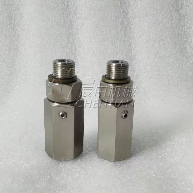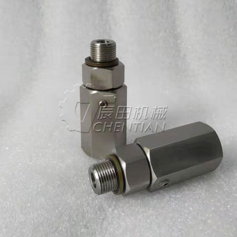 高压液压旋转接头(液压回转接头)可以360度旋转和回转,是旋转设备之上的液压执行机构输送液压介质的设备。是一种专门 用于低速高压多通路设备的一种旋转接头 ,它常用于开卷机,卷取机、液压机械及多通路 高压控制器之类设备。它具有以下特点:1. 精密轴承终身无需润滑;2. 专业密封圈保证长寿命运转;3. 不锈钢轴芯经特殊热处理保证了足够耐磨性;4. 独特的排泄孔;5. 壳体采用铝合金或黄铜;